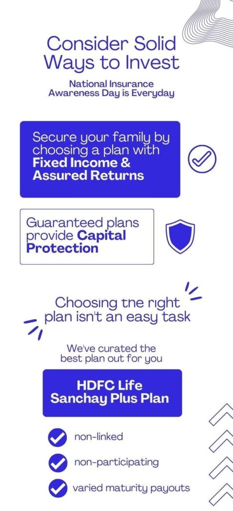 Today, a plan such as HDFC Life’s Sanchay Plus plan can be a sound scheme to opt for. With such a plan, you get a guarantee of income and insurance, giving you assured benefit payouts for a range of tenures.
