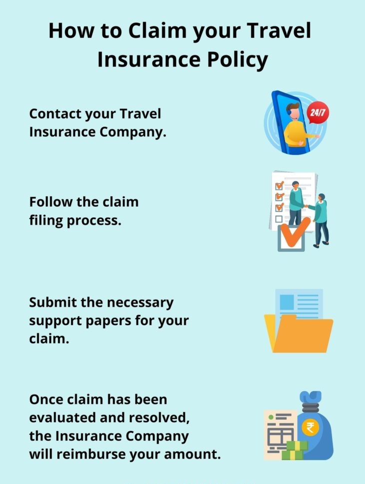 Call your Travel Insurance Company's 24x7 customer care line for help if you need to cancel your vacation. They will walk you through the process of filing a claim and obtaining the necessary supporting papers. In most cases, you may finish the claim procedure online. Once your claim has been evaluated and resolved, they will reimburse your amount.